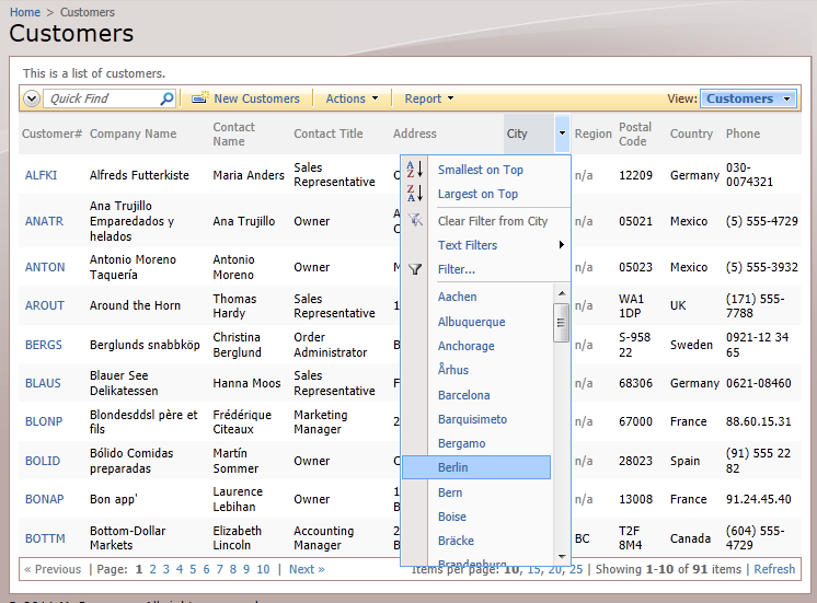Consider the list of customers presented in the following screenshot. We can see a list of customers from many countries.
