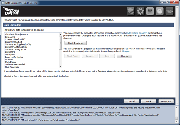 Click Generate to start the code generation.