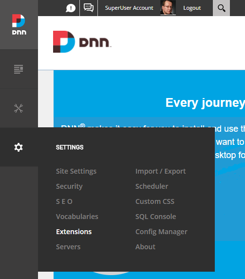Navigate to your DotNetNuke portal with the configured application endpoint as a SuperUser account.