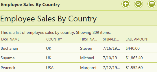 Press Ctrl+F5 to start the app without debugging. Log in as an administrator and navigate to the Employee Sales By Country page. Notice that all 809 records are displayed.