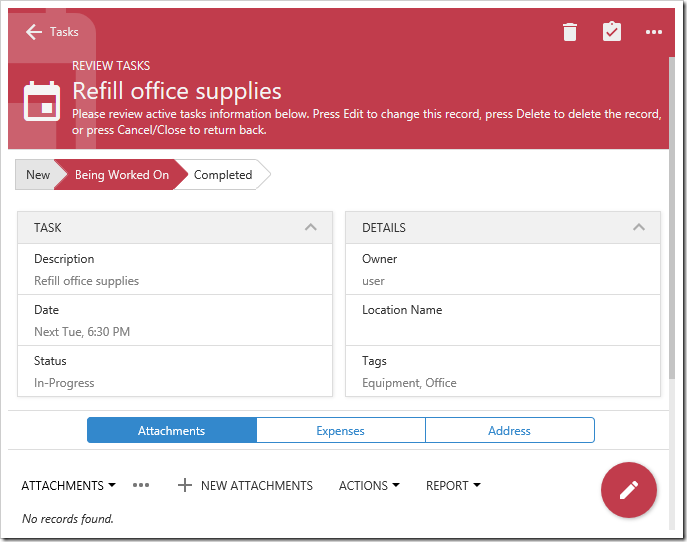Forms will be displayed in modal presentation if sufficient screen space is available. The modal will be sized based on a proportion of the screen’s width and height. Opening additional forms will slide the form in a modal from right side of the screen. The user can tap the previous modal to go back.