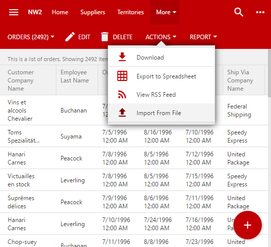 "Import From File" action available on the Actions menu of the action bar.