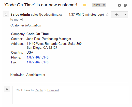 Imagine that you are running a mail order company called Northwind and would like to be notified when a new customer is registered in the database.