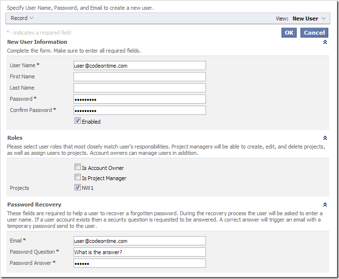 Note that your account must be marked as an Account Owner or Project Manager in Code On Time Account Manager in order to add a new project.