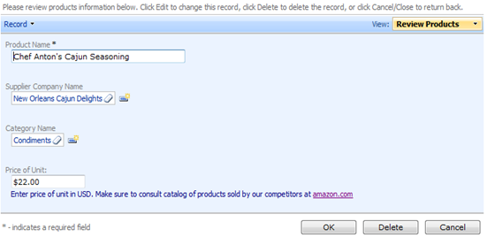 The same consistent display is available when users are editing data in any grid or form view of Aquarium Express or Data Aquarium Framework applications.