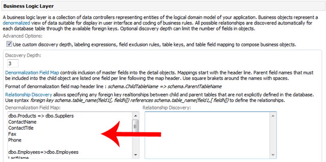 You will probably agree that this make sense. Sometimes the code generator will select a field that does not make much sense at all. You can assist the code generator by supplying a denormalization field map on Business Logic Layer page of the project configuration wizard.