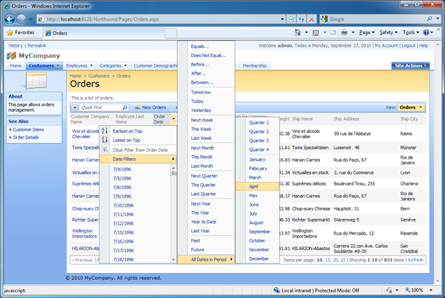 We are pleased to announce immediate availability of automatic Search Bars and Advanced Adaptive Filters. You can try these feature live at http://codeontime.com/demo.aspx.