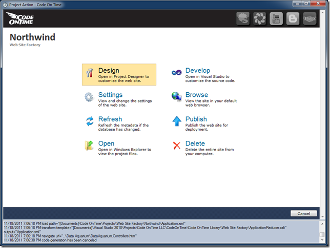 Project Designer features a fixed tool bar with actions Generate, Browse and Exit. It is now possible to generate and preview application without leaving the design environment.