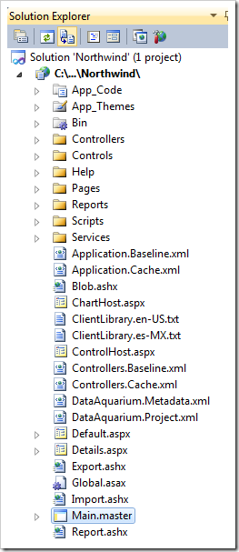 Locate the file Main.Master in the root of your web application using Solution Explorer.