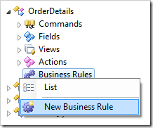 Right-click on OrderDetails / Business Rules node, and press New Business Rule.