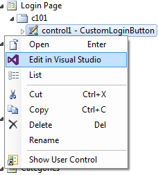 On the toolbar, press Browse to generate the web app and the new user control file. When complete, right-click on the control and press Edit in Visual Studio.