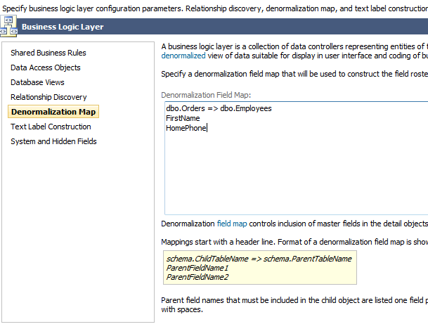 Switch to the Denormalization Field Map section, and enter the following field map: