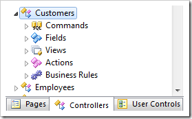 Start the Project Designer. In the Project Explorer, switch to the Controllers tab and double-click on Customers controller node.
