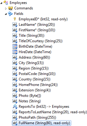 Start the Project Designer. In the Project Explorer, switch to the Controllers tab. Right-click on Employees / Fields node, and press New Field.