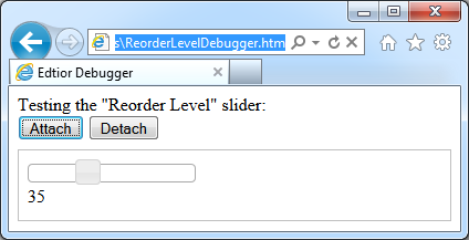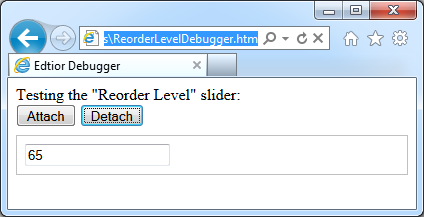 Buttons Attach and Detach invoke the corresponding methods of the “factory” object to associate custom input enhancement with the input field and to have them removed. This is exactly the same pattern of execution by the client library in the live web application.