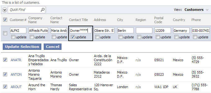 Press Update Selection button. The field values will be updated for the checked rows.