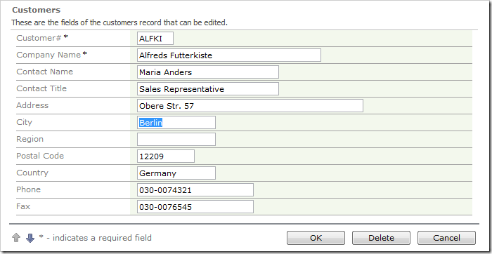 For example, let’s look at the City and Country fields in the Customers edit form. Both fields are simple text boxes – the user can type any value.