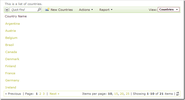 Switch back to the Project Designer. In the Project Explorer, right-click on Countries / Fields node, and select List option.