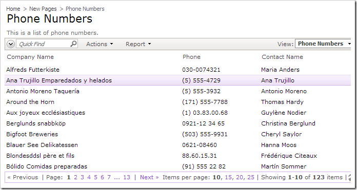 When the web app opens in the default browser, navigate to New Pages | Phone Numbers page. The new view will be displayed without errors.