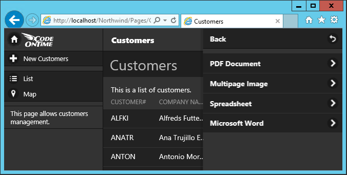 Selecting any report option will cause the app to produce a PDF, TIFF, Excel, or Microsoft Word document with reporting data.