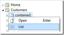 In the Project Explorer, the context menu option Show All Containers allows browsing the list of page containers.