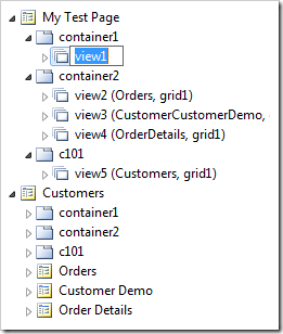 The picture below shows the four data views on the Customers page, placed in two different containers.