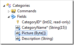 In the Project Explorer, fields are contained under the Fields node of a controller. If an asterisk (*) is present after the name of the field, the field is required. The field type and length are displayed in parentheses. Some fields fields may display “read-only” label.
