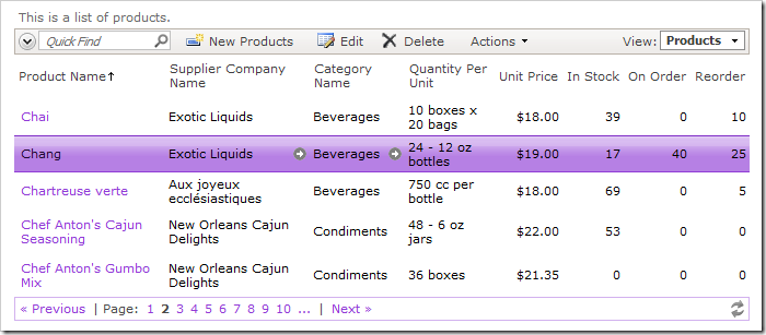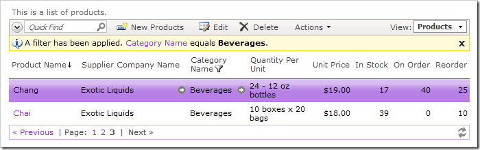 The application framework automatically locates the page that the data row belongs to while taking into account the sort order and filters. This behavior is automatic – it requires no programming.