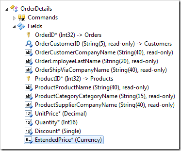 In the Project Explorer, switch to the Controllers tab and double-click on OrderDetails / Fields / ExtendedPrice node.