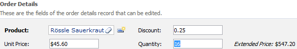 Press OK to save the field. On the toolbar, press Browse. The Extended Price field will not be editable, and the value will be presented when the form is rendered.