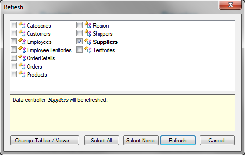In the bottom left corner of the Refresh screen, select Change Tables / Views… option.