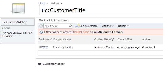 Press OK to save the user control. Press OK to add the control to the Customers page.