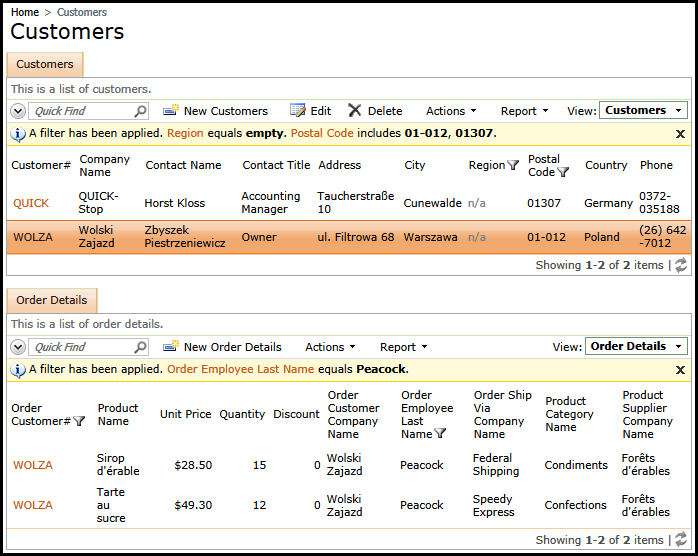 Start Project Designer for Northwind sample and select Customers page in the Project Explorer hierarchy.