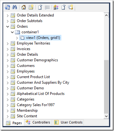 Start the Project Designer. In the Project Explorer, double-click on “Orders / container1 / view1 (Orders, grid1)” node.
