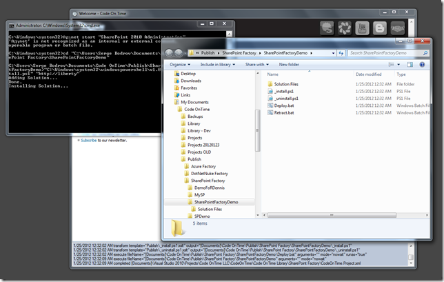 You will also see a folder with binary files that can be passed to your network for deployment on the production server. Notice that Deploy.bat and Retract.bat batch files are configured to run specifically on your computer and the administrator will have to change them to work correctly in the production environment.