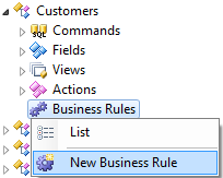 Switch back to the Project Designer. Right-click on Customers / Business Rules and press New Business Rule.