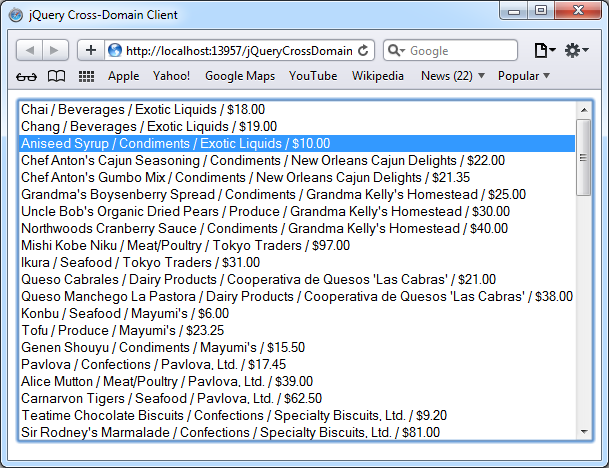 An integration partner can put together a simple HTML page to display a list of products from http://demo.codeontime.com/northwind with a very few lines of code.