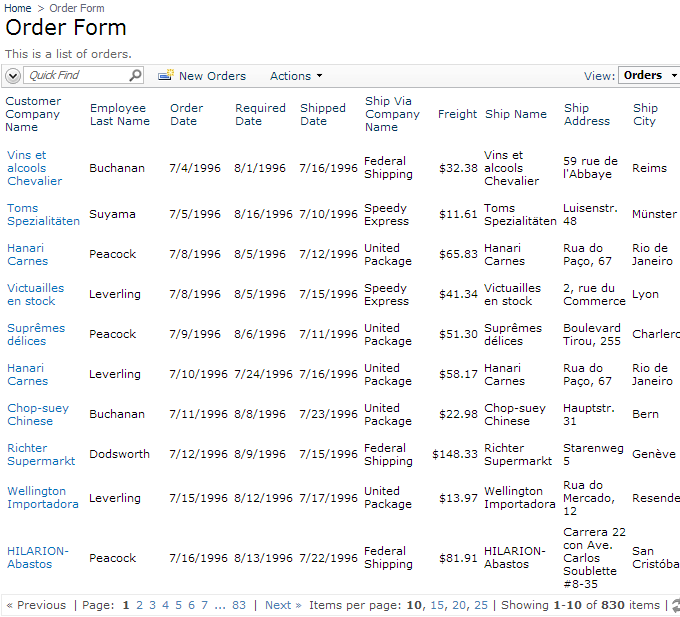 Press OK to save the data view. In the Project Explorer, right-click on Order Form page node, and press View in Browser.