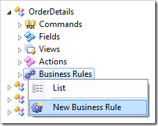 Right-click on OrderDetails / Business Rules node, and press New Business Rule.