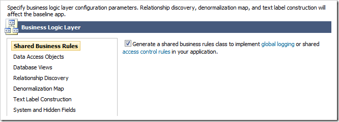 Start the web app generator. Select the project name and click Settings. Press Business Logic Layer and enable shared business rules. Click Finish and regenerate the project.