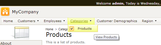 The Categories | Products page is visible for all authorized users in a default web application created from Northwind database. Let’s configure this page to only be visible for users with the role of “Administrators”.