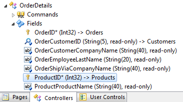 First, we need to clear the Copy instructions. Start the Project Designer. In the Project Explorer, switch to the Controllers tab. Double-click on OrderDetails / Fields / ProductID field node.
