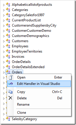 Right-click on Orders controller node and press Edit Handler in Visual Studio.
