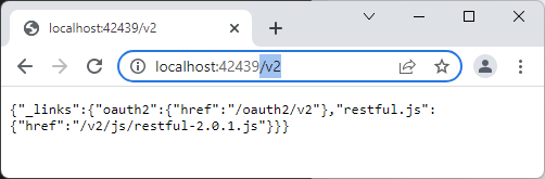 The standard endpoint of the built-in RESTful API Engine is /v2. Switch to your app running in the browser and enter this path right after the port in the address bar.