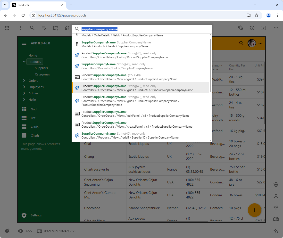 The selected Component will then create new configuration elements in the application's data controller or modify the properties of existing elements. After the Component's action is complete, the user is transitioned to the App Explorer, where they can further refine the changes and configure related properties. This approach provides a familiar visual development workflow, similar to using a component toolbox in visual IDEs, to accelerate UI customization and make Code On Time's powerful configuration options more accessible.
